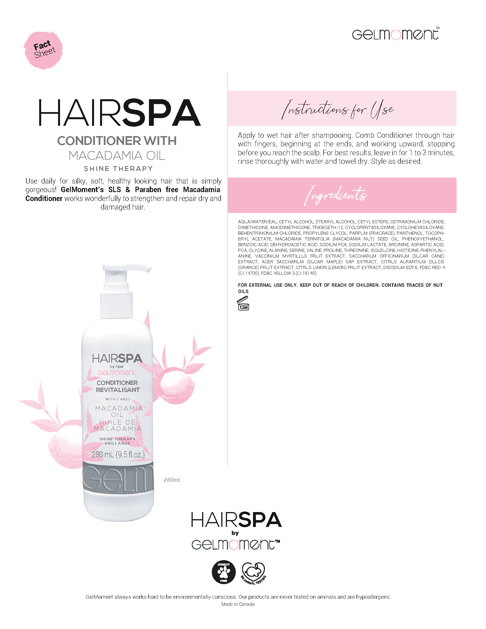 Use daily for silky, soft, healthy looking hair that is simply gorgeous! GelMoment’s SLS & Paraben free Macadamia Conditioner works wonderfully to strengthen and repair dry and damaged hair.